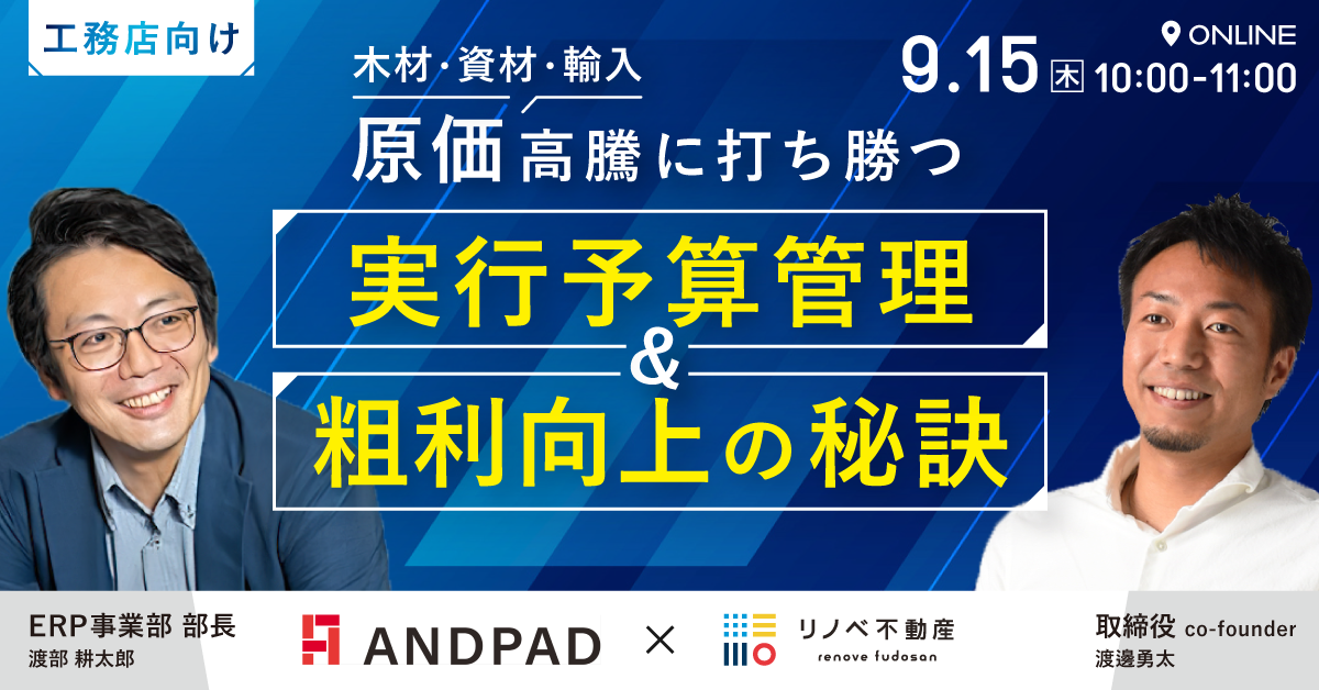 【リノベ不動産×ANDPAD】経営体質を強くして業績を伸ばす〜原価高騰対策の実行予算徹底管理と粗利向上の秘訣〜